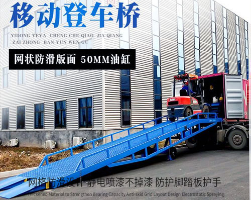 煙臺登車橋-煙臺集裝箱卸貨登車橋-物流登車橋用于無裝卸設備的貨臺及流動裝卸場所,是與叉車配合使用的貨物輔助設備。借助該設備,叉車能直接駛入汽車車廂內部進行批量裝卸作業。只需單人操作,不需動力電源,即可實物的安全快速裝卸。既可使您減輕勞動強度,又能成倍提高裝卸作業效率,加快物料流通速度,獲取更大經濟效益。